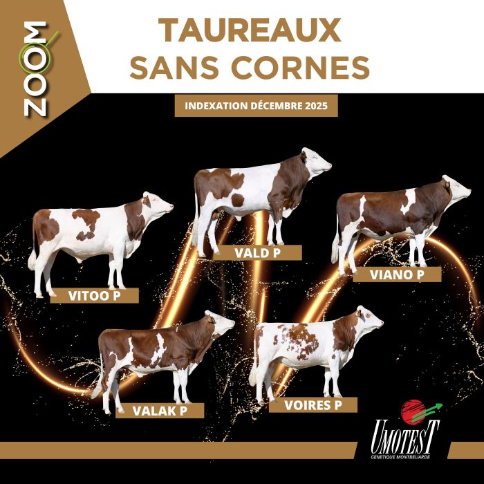 Cet hiver, UMOTEST enrichit son offre avec 5 taureaux sans cornes, dont 4 nouveautés.